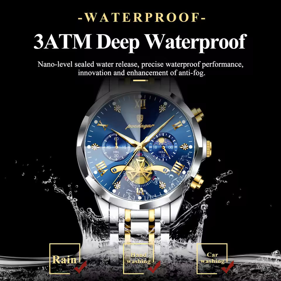 Poedar Luxury Men's Watch Top Original Waterproof Luminous Chronograph Men's Wristwatch Stainless Steel Quartz Men's Watches Reloj