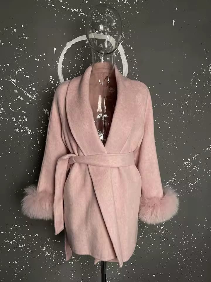 UCXQ Elegant Office Lady Fur Coats Patchwork Long Sleeve Wool Coat Beautiful Women's Clothing Jacket Autumn 2025 Spring